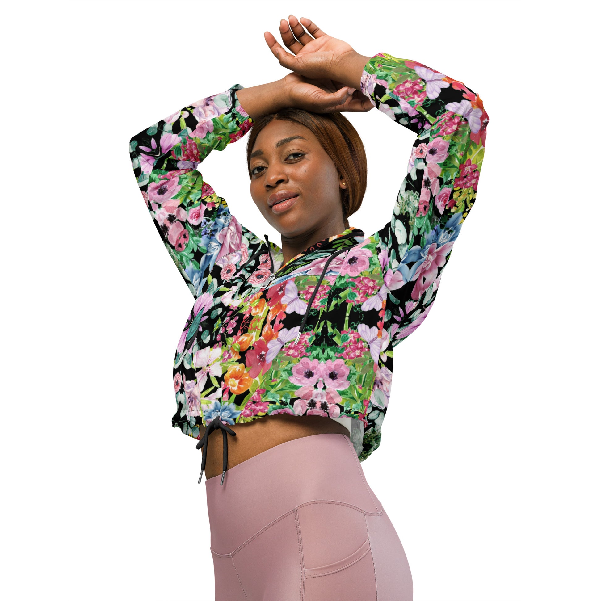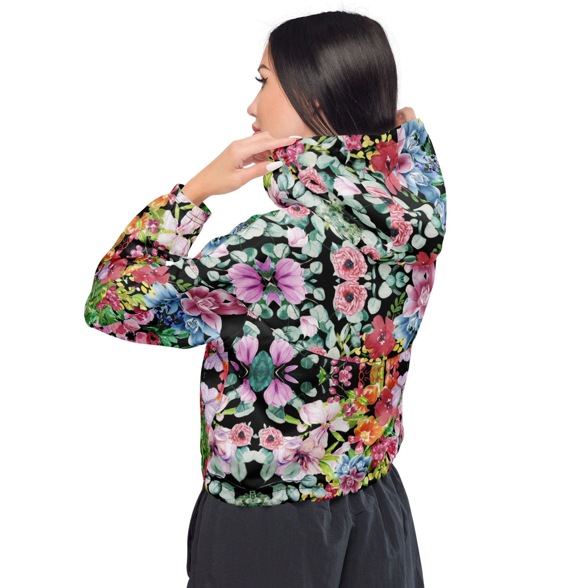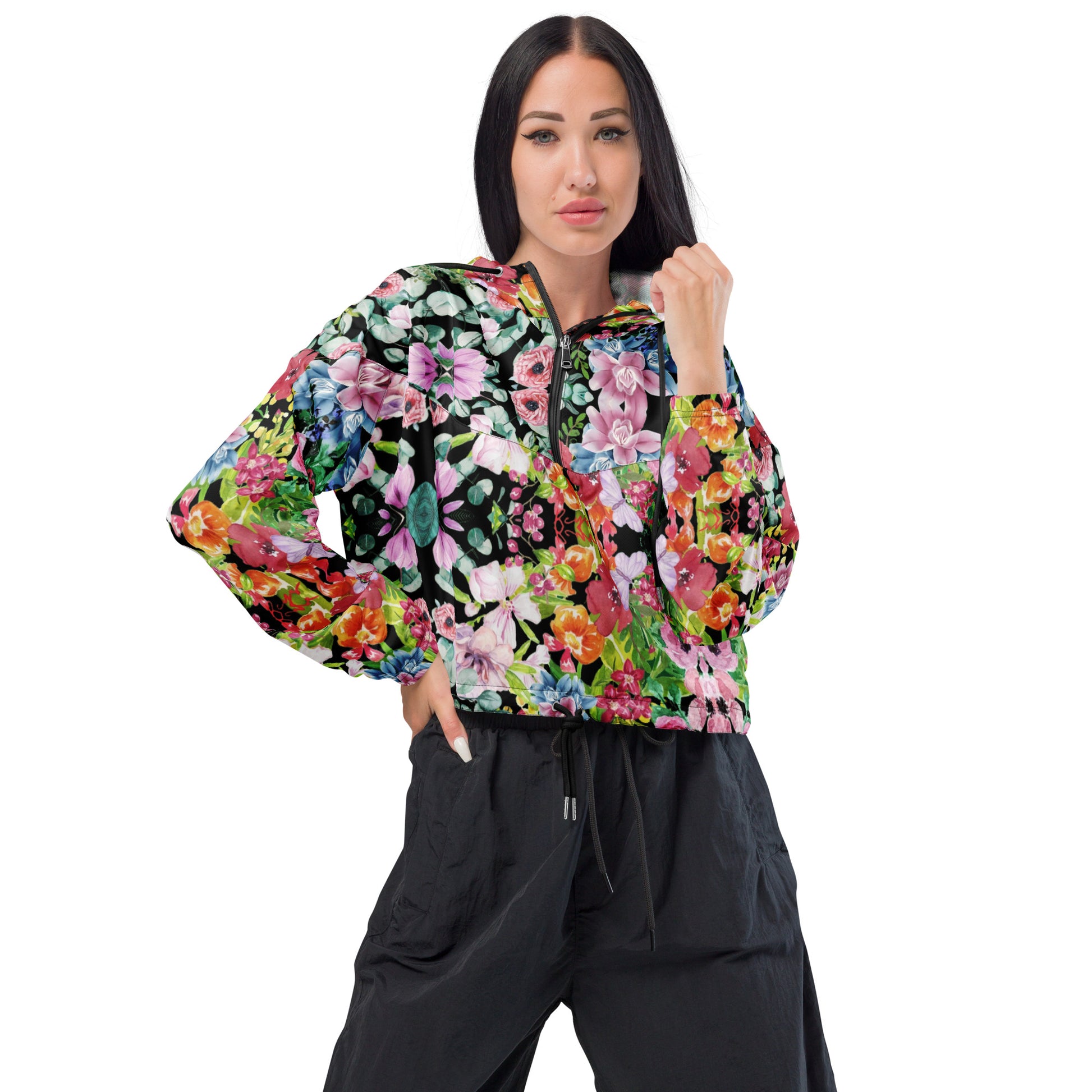 Step into the spotlight with the Gemma Women’s Cropped Windbreaker, the perfect blend of femininity and flair for your next rave adventure. Adorned with a stunning floral print in vibrant colors, this lightweight windbreaker is designed to make you feel confident and stylish while keeping you comfortable. The cropped cut accentuates your silhouette, allowing for easy layering over your favorite outfits.