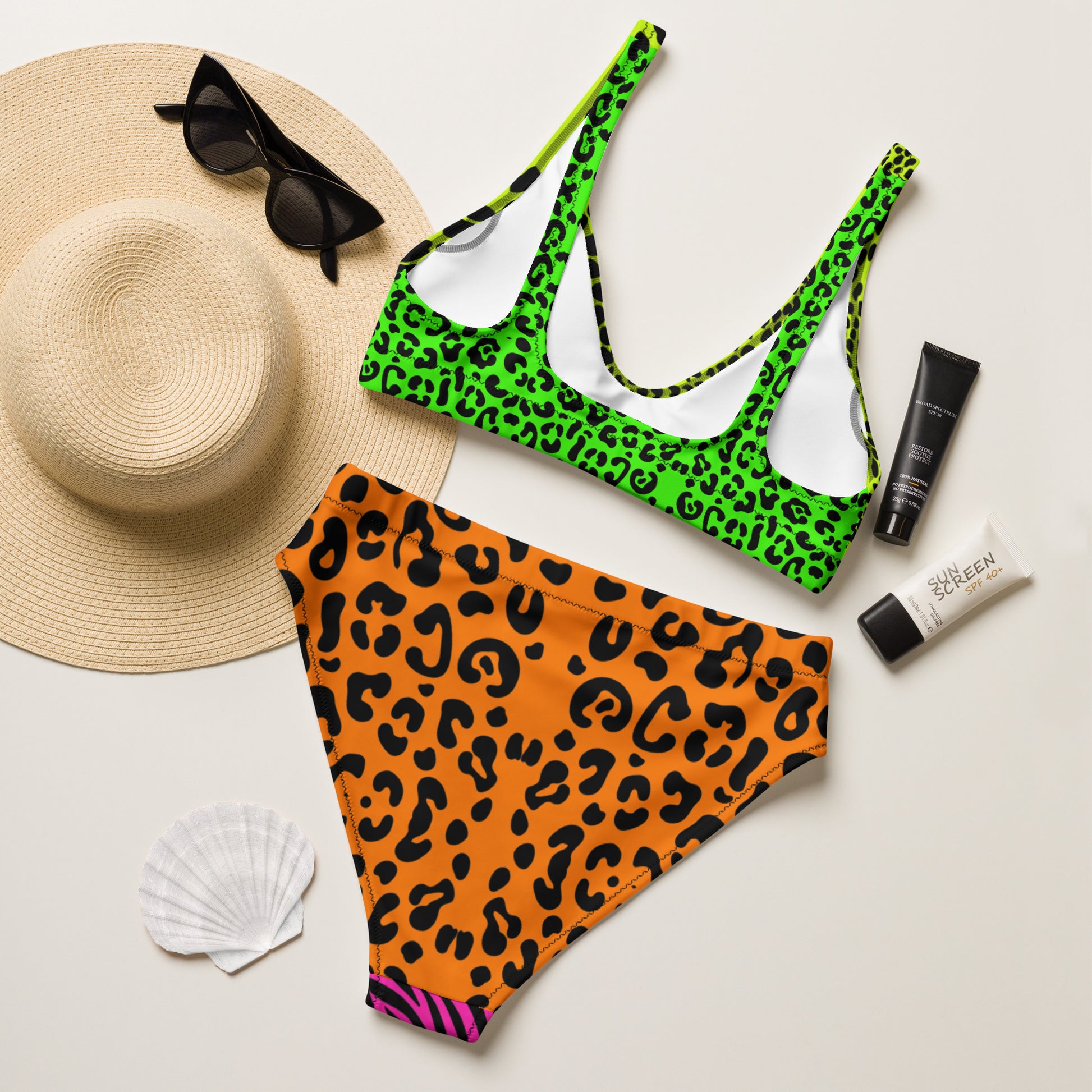 Get ready to light up the beach or the dance floor with the Nadine High-Waisted Bikini, where bold neon colors meet fierce animal prints for the ultimate rave-inspired look! This bikini is designed to stand out, featuring vibrant hues and wild patterns that bring serious festival energy to any setting. With a flattering high-waisted cut that hugs your curves and provides comfortable coverage, the Nadine Bikini is perfect for those who love to make a splash in style. Embrace your wild side and get ready to shine bright in this eye-catching, party-ready swimsuit!